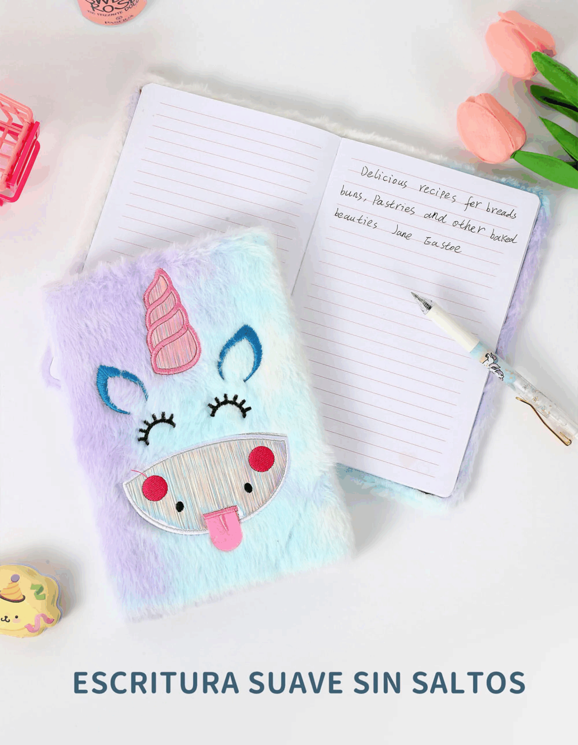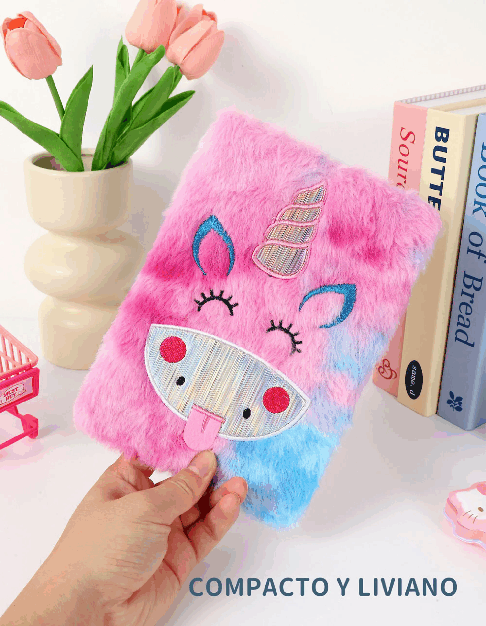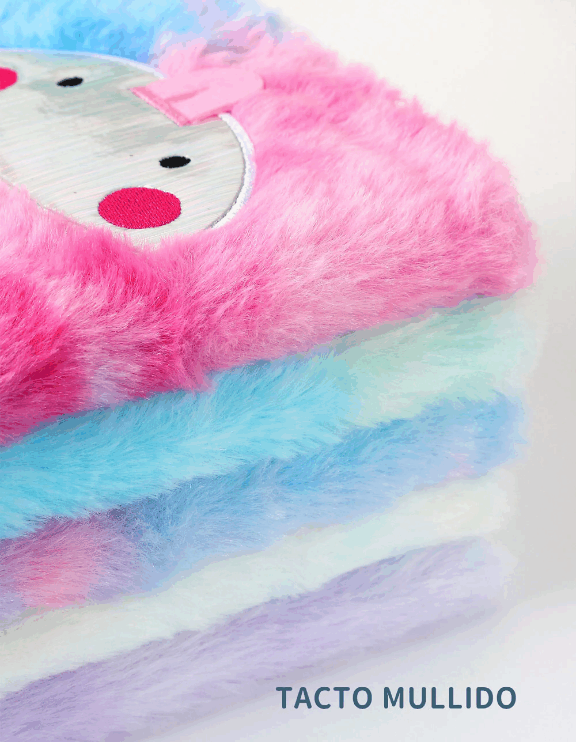 Anotador peluche de tapa dura con 75 hojas rayadas.