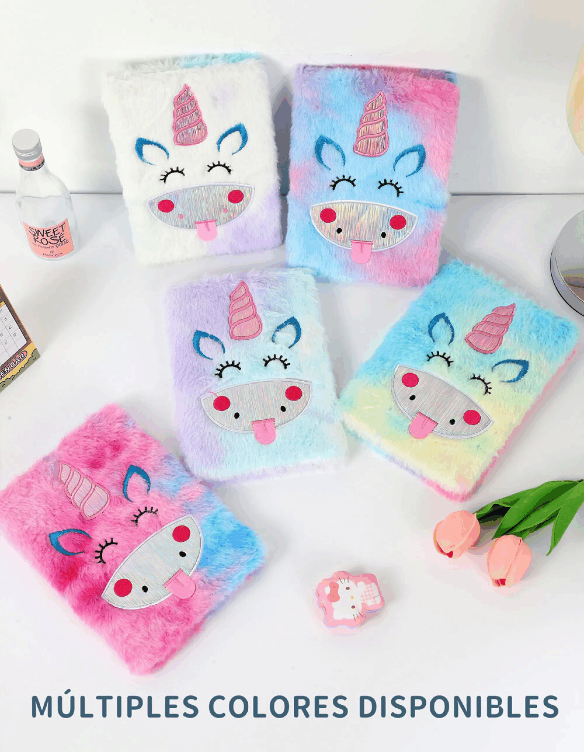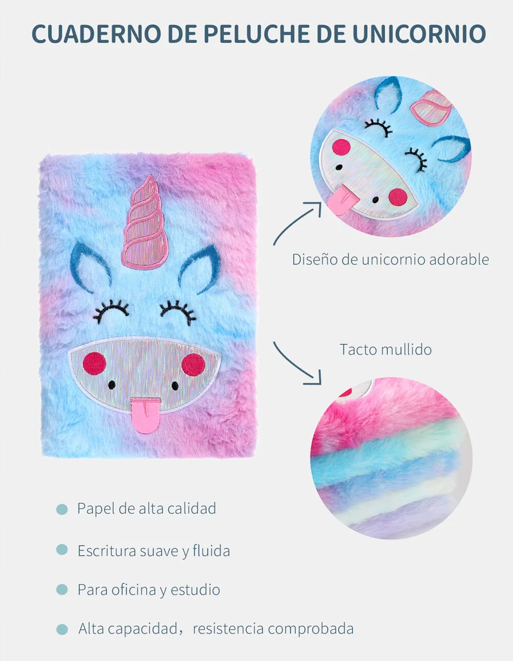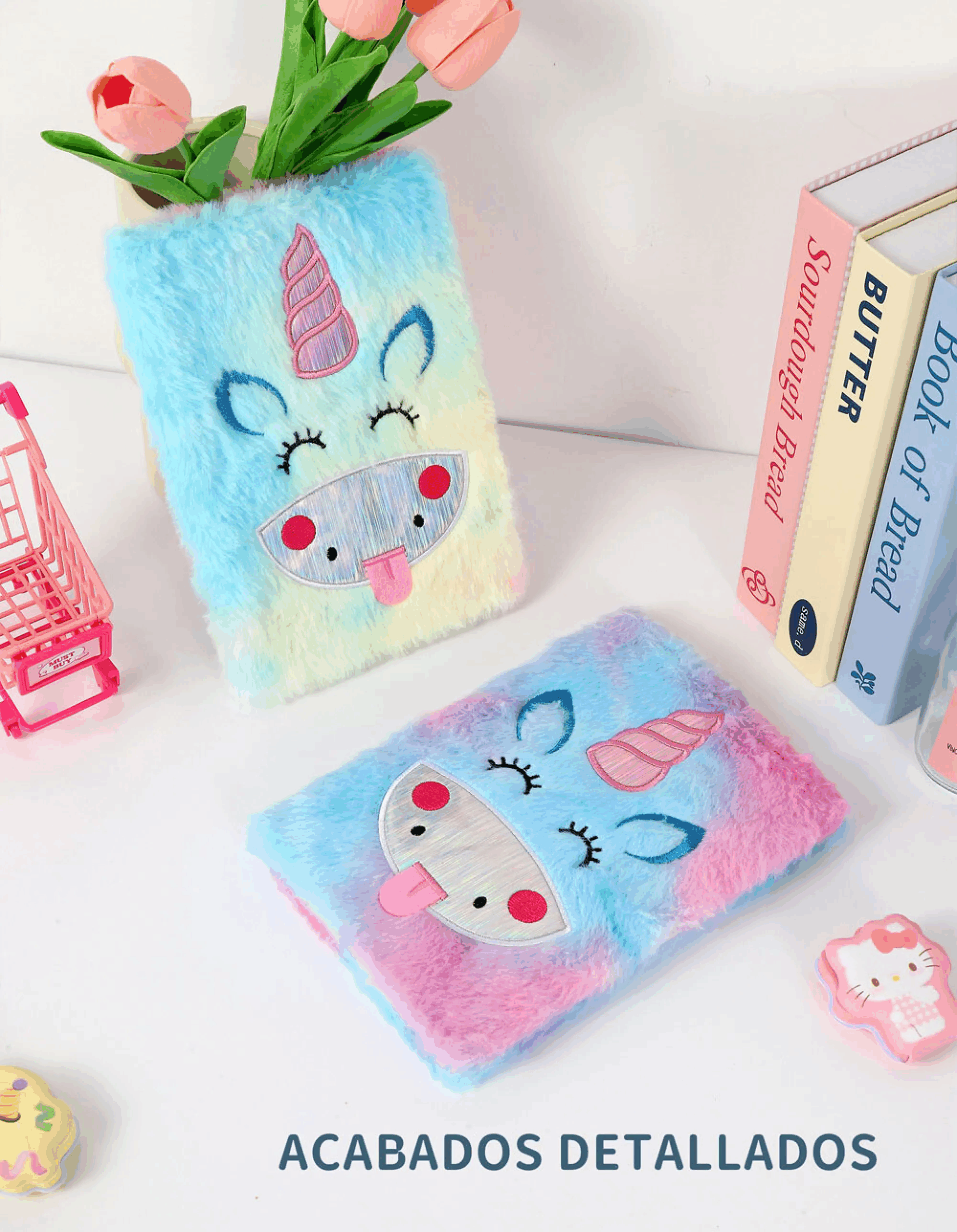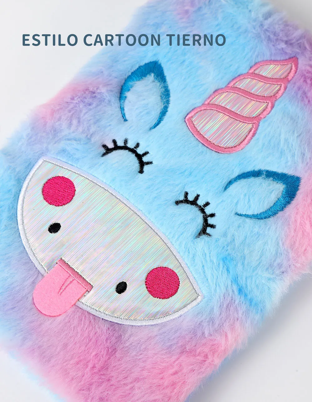 Anotador peluche de tapa dura con 75 hojas rayadas.